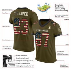 Custom Olive Vintage USA Flag Cream-Black Mesh Authentic Salute To Service Football Jersey